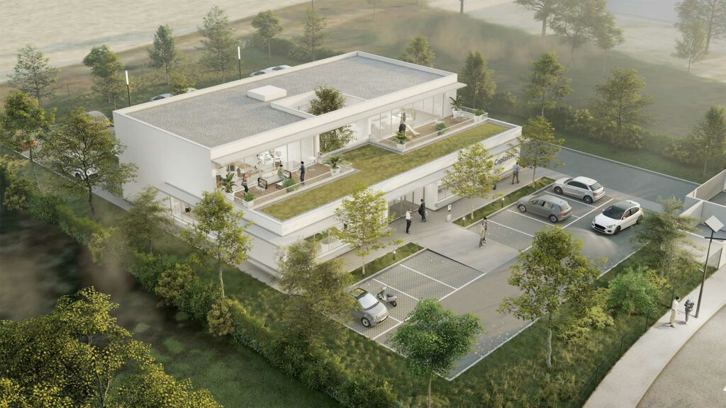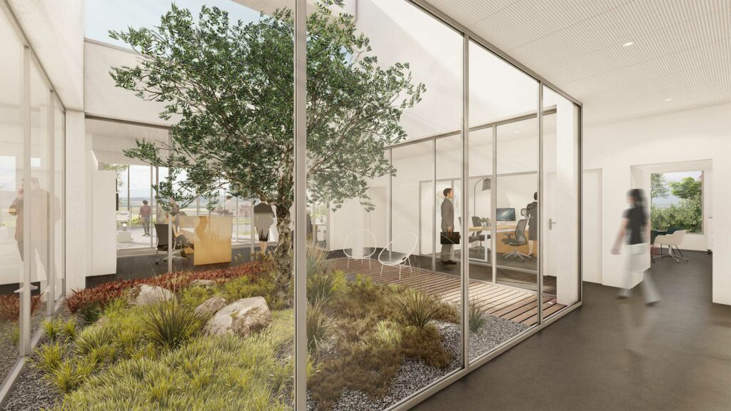 Le programme immobilier se veut lumineux et spacieux pour un lieu de travail agréable.